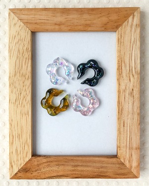 クリアレジンにピンクのラメと小さめホロを入れ込みます。
